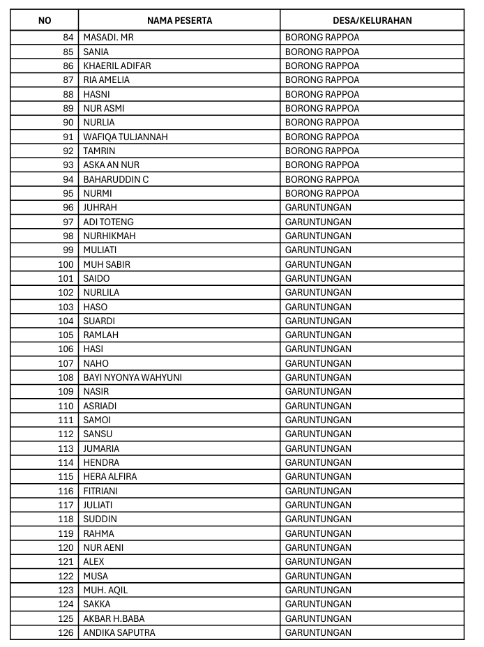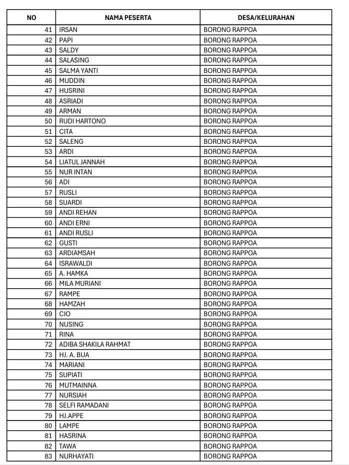 cek namata masing masing khusus pesesrta Faskes Borong rappoa dan apabila domisilnya borong rappoa dan faskesnya balibo maka namanya akan terdaftar di faskes balibo dan bisa cek langsung di faskesnya untuk nama nama yang non aktif dan tentunya namanya tidak ada didaftar list dibawah ini dan apabila sudah dinon aktifkan bisa melakukan reaktivasi ke dinsos atau di Desa masing masing untuk cek desil apakah masih memenuhi persyaratan menerima Bantuan Bpjs gratis dan apabila sudah tidak memenuhi bapak/ibu bisa alihkan ke bpjs mandiri dengan link yang kami sediakan di bibawah ini